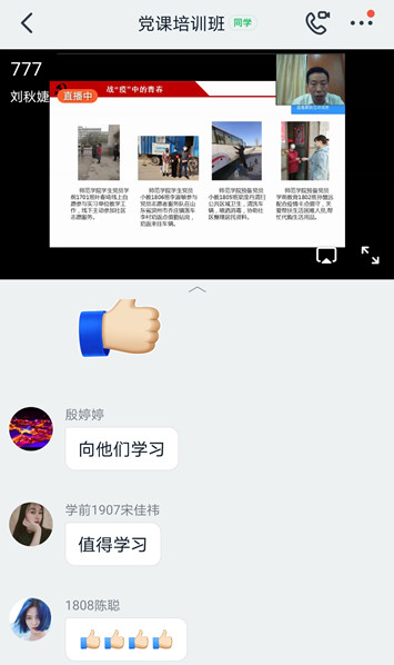 学习完毕,小学教育1805班梁滢丹同学说:“在这场抗击疫情的战斗中,我看到了青年一代正在扛起历史赋予的保卫国家、建设国家的重任。我要把毕生所学奉献给社会,实现新时代大学生的价值和担当。”青年教师张歆怡表示,作为一名年轻党员,不仅要向老党员学习,更要积极投身到党领导的革命、建设和改革的伟大事业中去,在平凡的教师岗位上做出不平凡的事业。