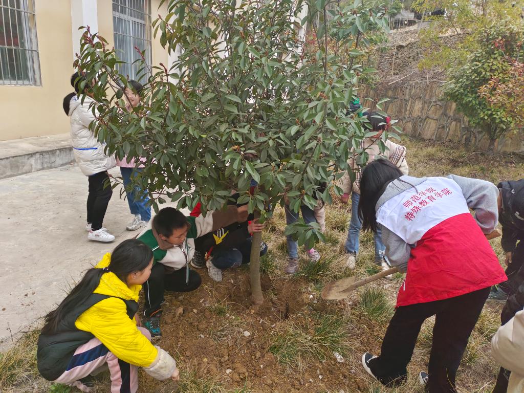 3月10日,师范学院[1+]青年志愿者协会10名师生志愿者,前往海拔一千多米高的南漳县板桥镇新集完全小学,开展“同植一棵树 共建一片绿”植树节活动,同时给该校送去了非遗南漳剪纸、人工智能机器人、手工折纸等特色课程。