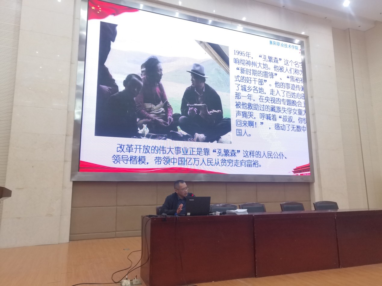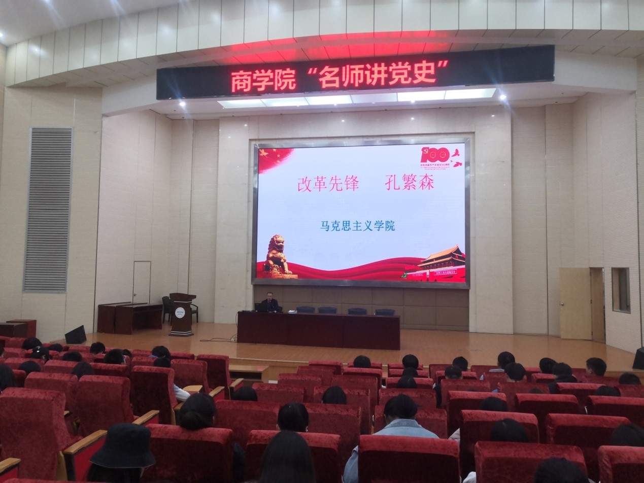 11月18日晚,商学院在图书馆2号报告厅举行“名师讲党”系列讲座之《改革先锋孔繁森》。马克思主义学院王金锋老师应邀主讲。商学院所有21级在校学生一起重温孔繁森精神。