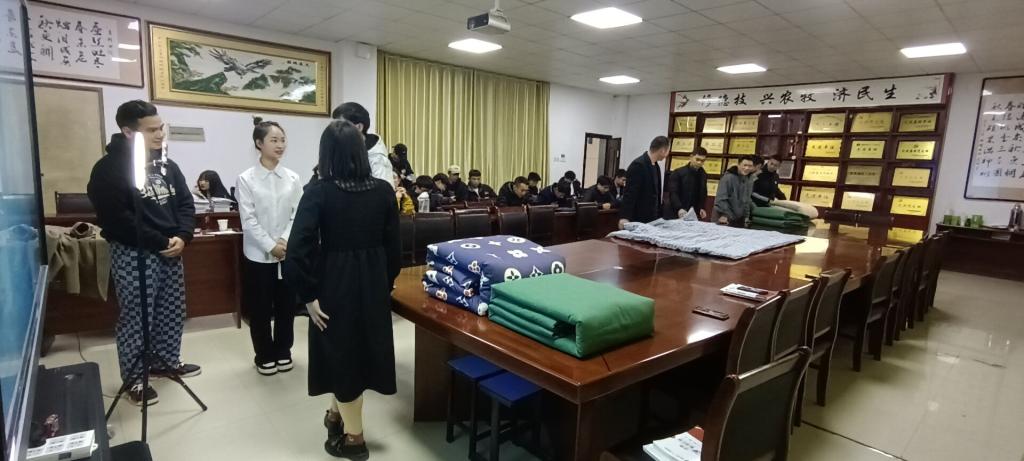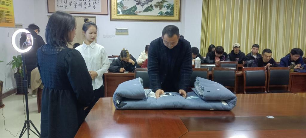 为了进一步深化推动两室文化节活动,让同学们更好、更全面地掌握寝室内务整理方法和技巧,12月14日中午,农学院邀请退役复学同学在健行楼一楼会议室云平台,直播讲解如何叠被子。