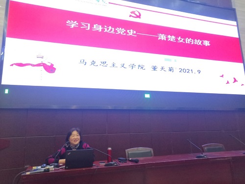 10月11日晚,商学院在图书馆二号报告厅开展了主题为“学身边党史,听萧楚女故事”党史学习教育。马克思主义学院董天菊教授应邀担任主讲。商学院学工科长梁光源、办公室主任齐兴华及21级会计专业班主任和学生参加活动。