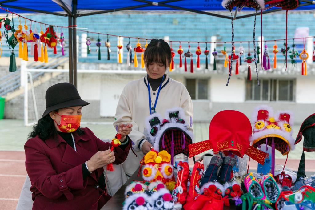 11月17日,师范学院在操场开设“非遗集市”一条街,吸引众多学生前来围观。