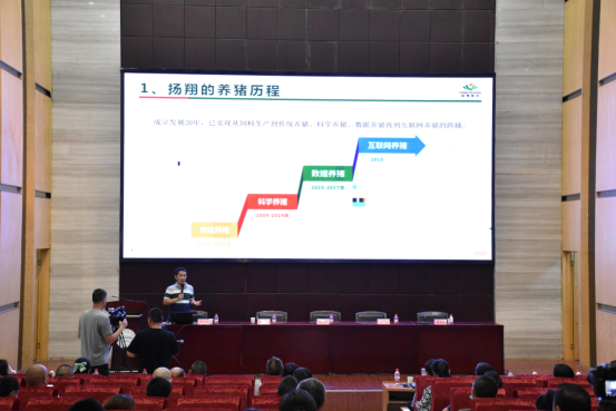 张伟超作“集成式智慧楼房猪场的实践运用”专题学术讲座。