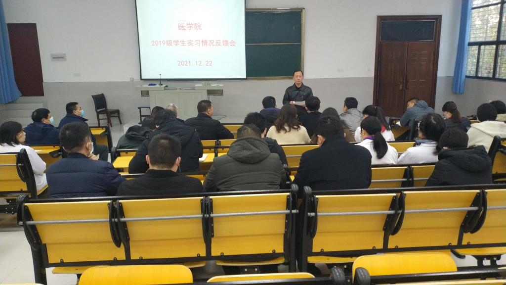12月22日下午,医学院在阶四教室召开2019级学生实习情况反馈会。会议由教务科科长张菲主持。医学院副院长张家忠、杨雷,各专业主任和辅导员以及2019级全体班主任参加会议。
