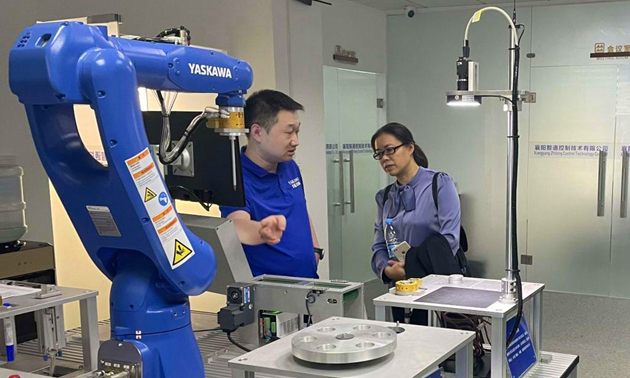 9月30日下午,汽车工程学院副院长沈先飞和工业机器人专业研究室主任雷红华,赴襄阳智通控制技术有限公司开展工业机器人技术专业人才培养方案调研,并洽谈工业机器人岗位人才的订单培养与建立机器人教育集团等校企合作项目。