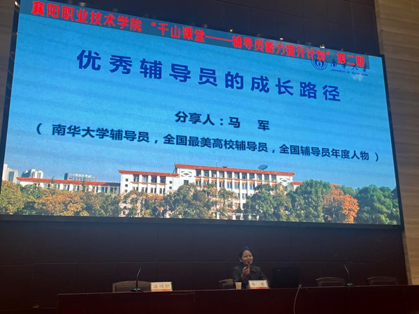 11月16日上午,学工处在图书馆一号报告厅组织开展“千山课堂——辅导员能力提升计划”第二期培训。南华大学“全国高校最美辅导员”马军教授应邀主讲。