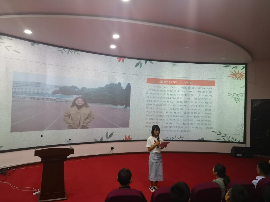 张菊芳介绍了旅游与艺术学院2020届学生专升本录取详细情况。旅游1702班李萌同学和旅游1802班付天乐同学分别介绍了自己成功升本的备考经验和英语学习经验。李萌认为,备考的过程中,坚持就是胜利;所谓的好运气,不过是在机遇来临的时候,而你恰好攒够了实力。付天乐同学认为,在“流量”横行的年代,想要成为一个能够坚守本心、继续前行的人,实在难能可贵,希望大家都能做那个坚守本心的人。