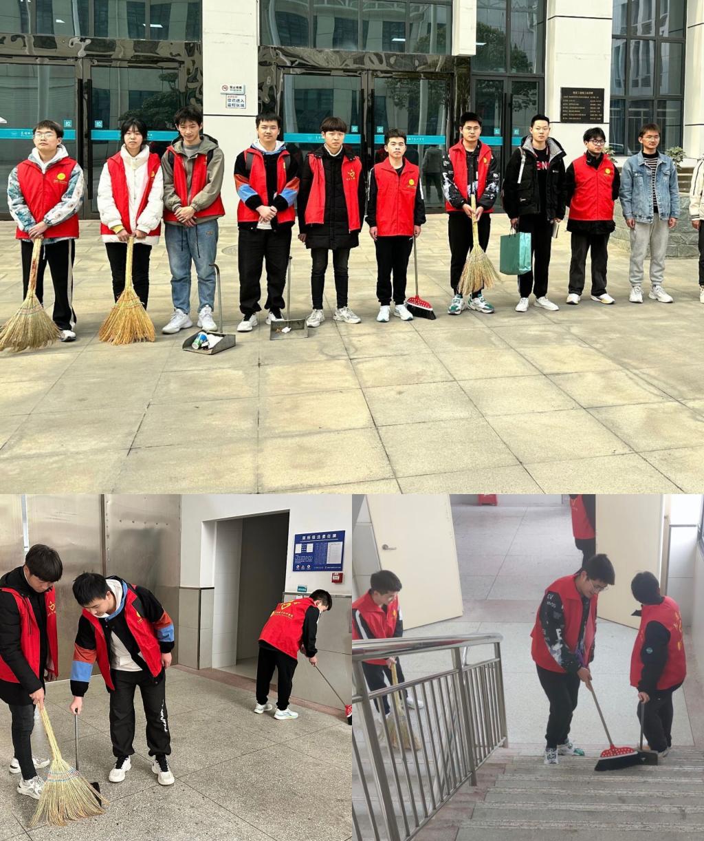 3月1日中午,志愿服务队来到智造工业中心D栋,打扫D栋教室及公共卫生区域,为师生营造一个洁净舒适的学习环境。