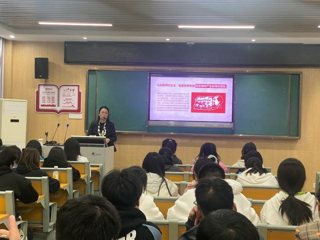 11月10日晚上,商学院在笃学楼N101举办了名师讲党史——中国共产党人精神谱系之延安精神主题讲座。马克思主义学院闵德美老师应邀主讲。