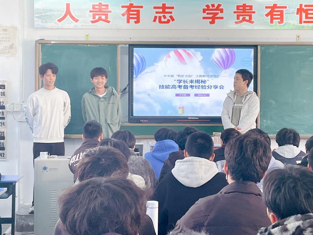 为传承备考经验,助力学生高考,中专部于11月17日下午,在博学楼举行技能高考经验分享会。此次分享会是中专部2022年“筑梦·启航”主题教育之“筑梦高考”模块中的子活动。举办“筑梦高考”系列活动,旨在引导学生树立可持续发展的学业规划,明确升学目标并为之努力。