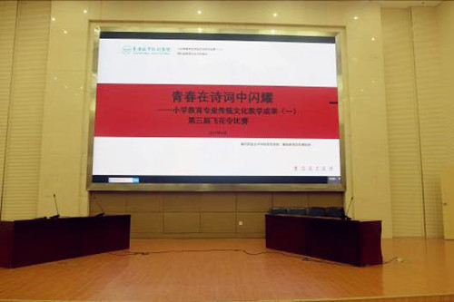 6月11日晚7点,师范学院小学教育专业传统文化教学成果之一——第三届飞花令比赛在图书馆二号报告厅拉开帷幕。师范学院院长肖尚军、特殊教育学院院长马仁海,副院长吴卫明、李兴兵、彭建设,小学教育专业教师与18级小学教育专业学生一起观看了本次比赛。