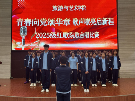 9月19日,旅游与艺术学院2025级新生红歌、院歌合唱比赛在图书馆一号厅举行。全体新生班级、班主任及学工团队参加活动。