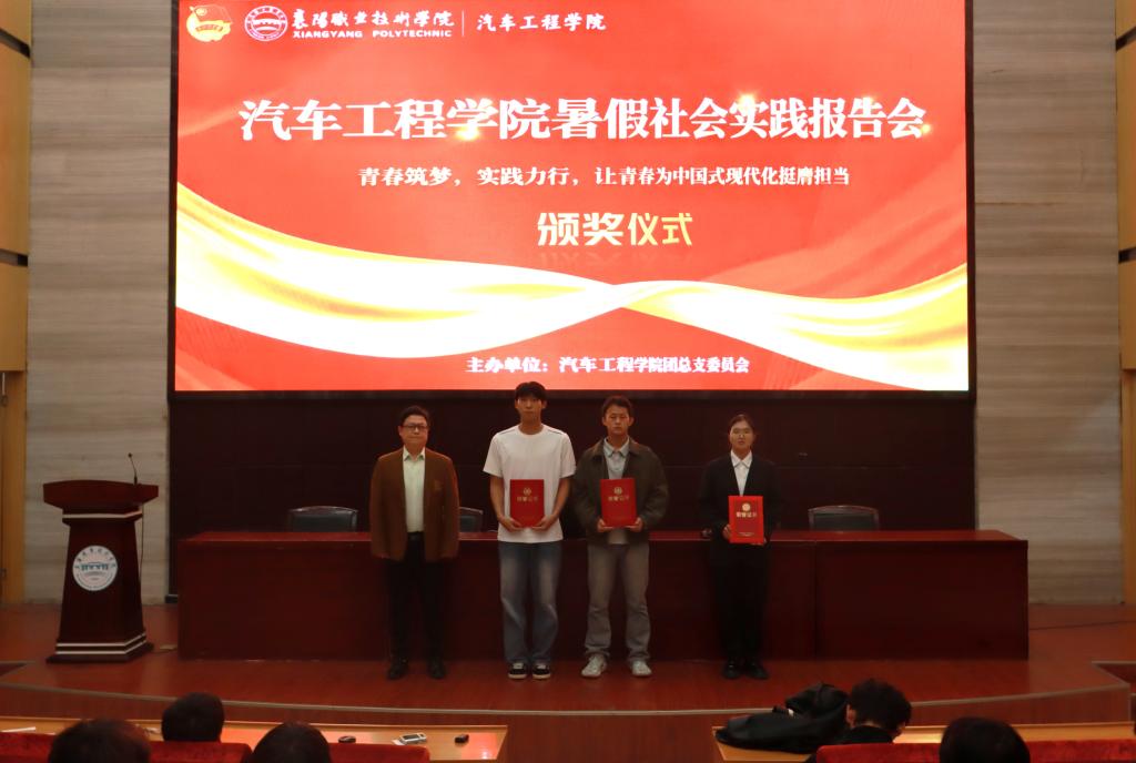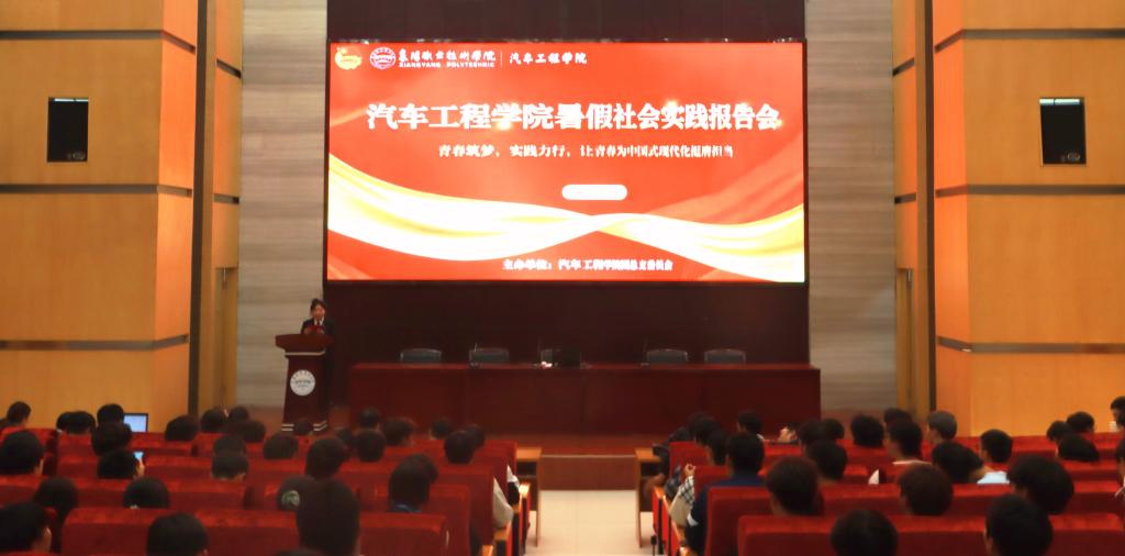 为深化实践育人和“大思政课”工作成效,引导和帮助青年学生在社会大课堂中坚定理想信念,厚植家国情怀,汽车工程学院于9月29日晚在图书馆一号报告厅举办2025年暑假社会实践报告会。副院长韩向东、学工科长赵昆以及2025级新生代表参加活动。