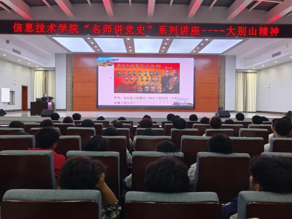 10月15日,信息技术学院在智能制造大楼A栋报告厅举办“名师讲党史”讲座。本次讲座聚焦“大别山精神”主题,由马克思主义学院王金锋老师担任主讲。