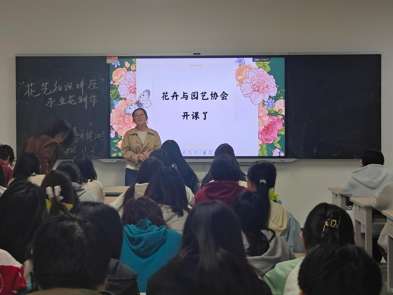 11月3日晚,农学院在高铁南路校区嘉禾楼205教室成功举办花艺知识讲座暨永生花制作活动,吸引众多花艺爱好者参与。