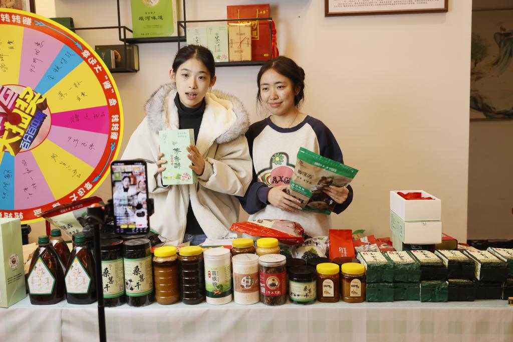 在堰河味道咖啡馆现场,商学院副院长唐卫东、专任教师侯宁远带领网络营销与直播电商2301班学生薛正勤与电子商务2401班学生左欣弘、程竞暄搭建直播带货平台,将村庄特色农产品推向更广市场。实践中,学生们不仅运用专业知识优化直播流程、讲解产品亮点,更在与村民的互动中,深刻体会 “敢闯敢干、务实担当”的堰河精神。