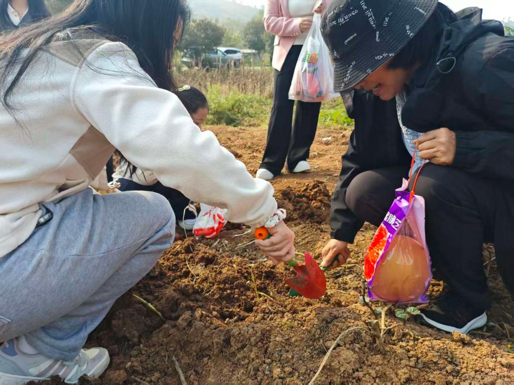 当天,老师们还前往当地的红薯园,体验秋收丰硕的成果。