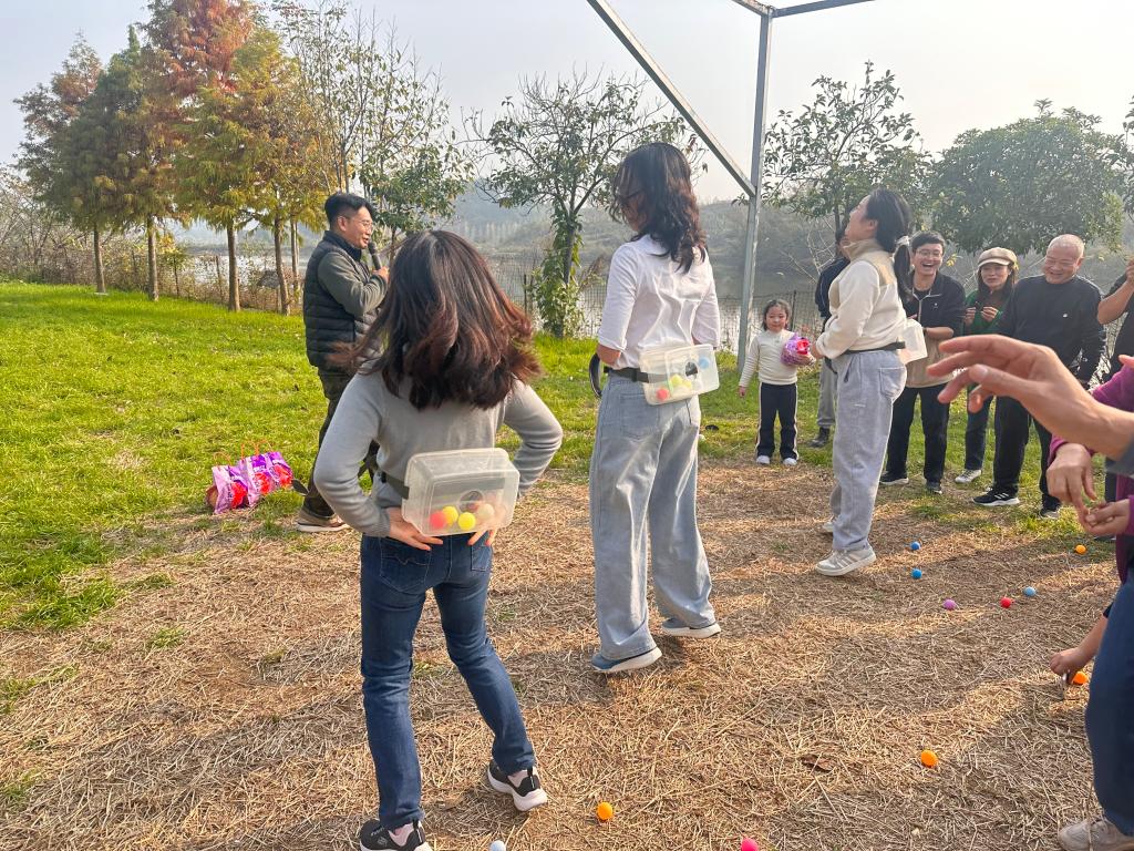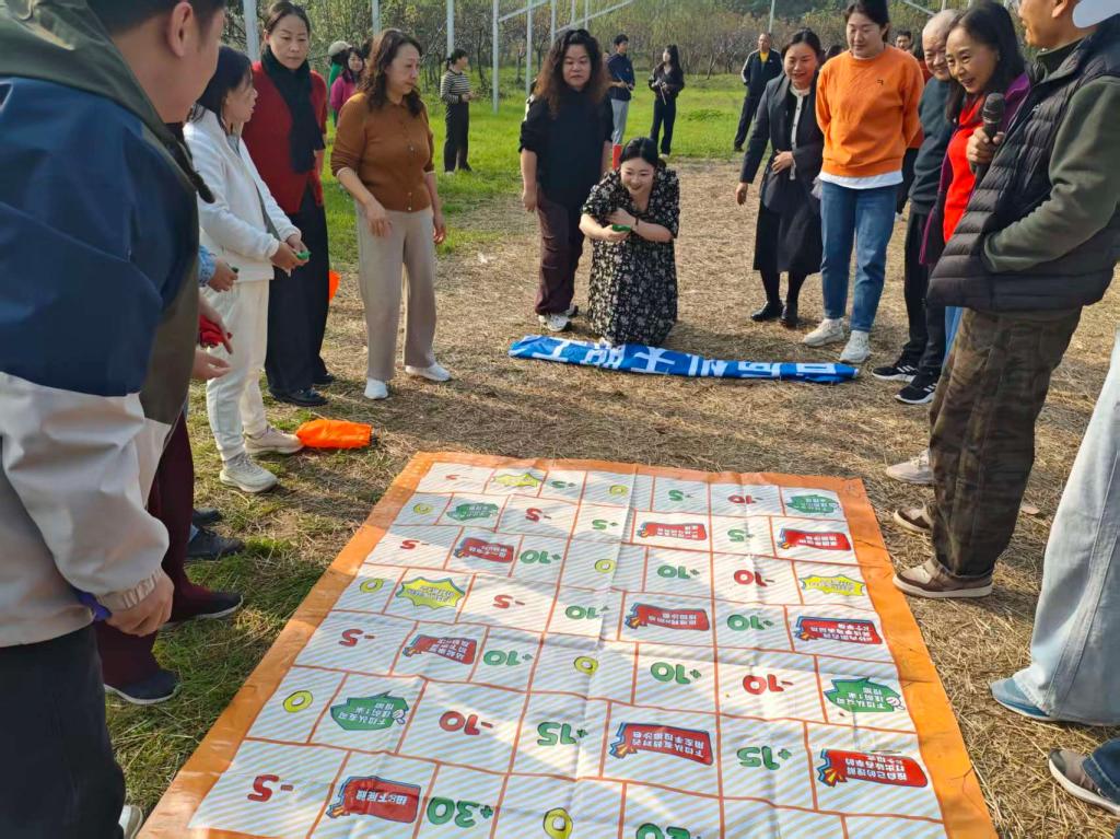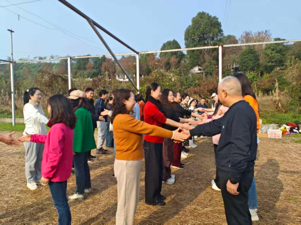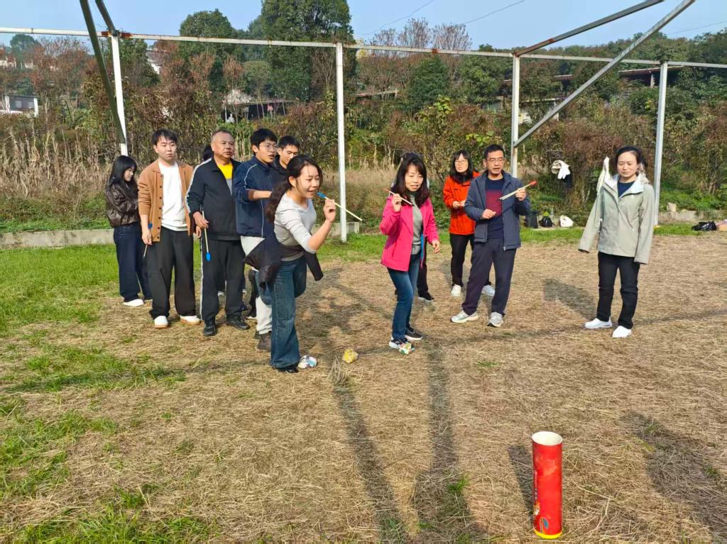 到达目的地后,老师们分组开展了拓展活动。在教练的代领下,老师们两两一组开展“一拉二躲”游戏;之后,分为四组分别进行了“丢沙包”和“投壶”游戏的PK,老师们各显神通,你追我赶;最后进行的“母鸡下蛋”游戏将现场气氛推向高潮。