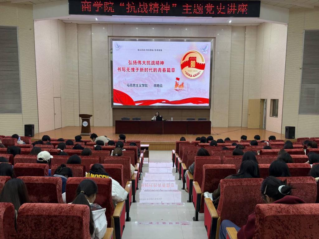 熊艳云老师以深厚的理论功底和丰富的历史知识,引领大家回顾了那段波澜壮阔的抗日战争岁月。她围绕“抗战精神”的深刻内涵、历史背景、形成过程及其伟大的时代价值,进行了系统而生动的阐述。历史的回响与时代的强音在这场讲座中交汇,极大地激发了商学院学子的爱国热情与历史责任感。