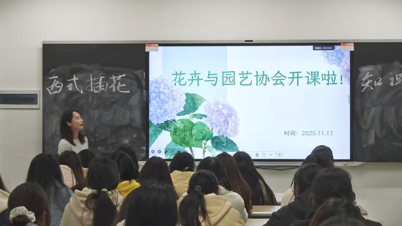 11月17日晚,农学院在高铁南路校区知行楼314教室开展“西式插花”活动。本次活动以西式插花技巧为核心,创新性地将美学设计理念与实操教学相结合。
