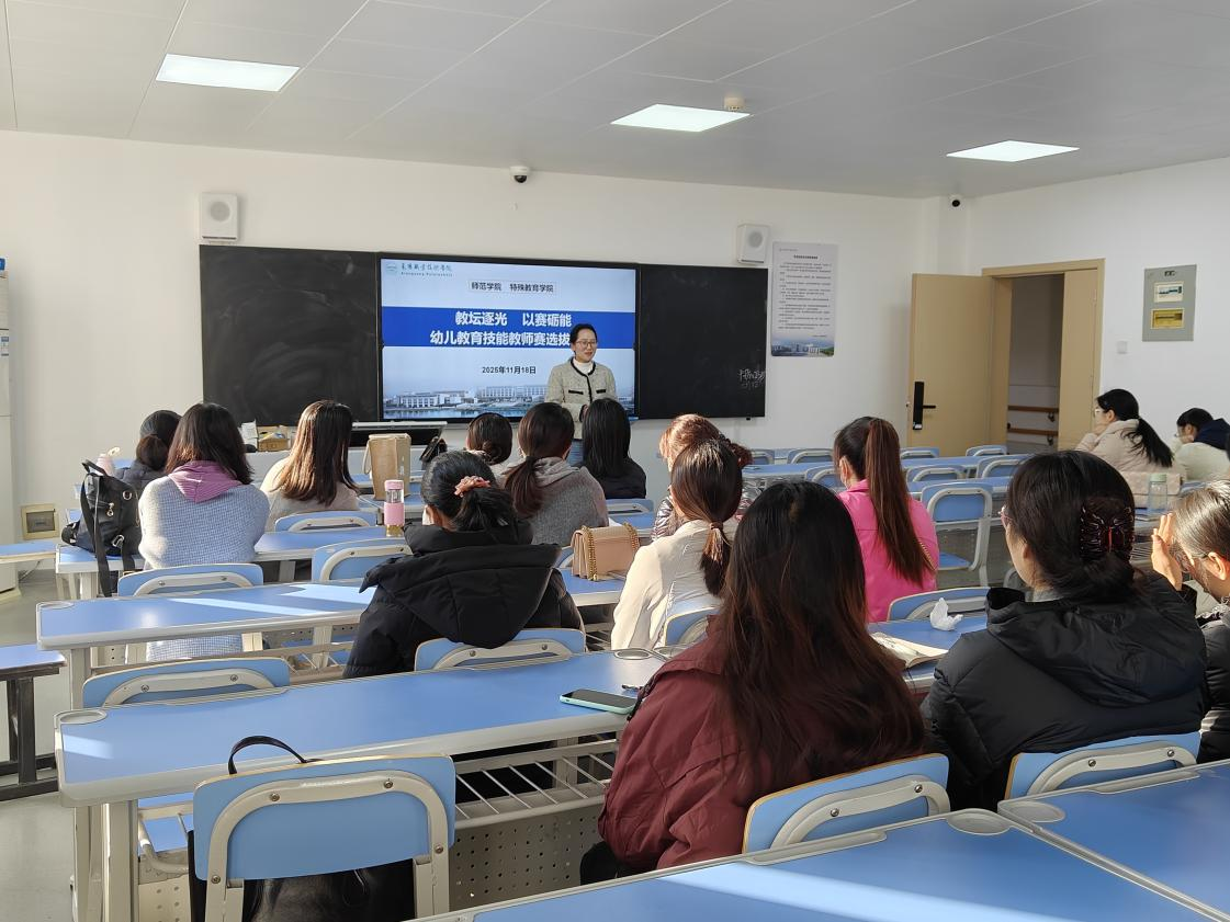 为积极备战2026年世界职业院校技能大赛湖北省教师赛,11月18日下午,师范学院(特殊教育学院)在博爱楼307教室开展“幼儿教育技能赛项”参赛教师选拔活动。