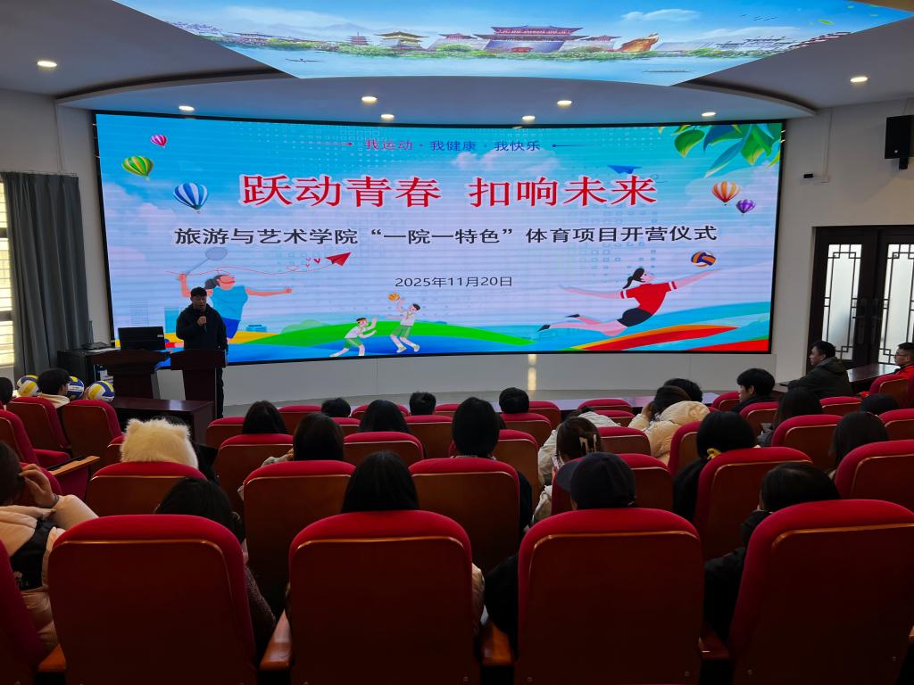 为丰富阳光体育活动内容和校园体育生活,帮助学生树立健康意识和终身体育锻炼观念,11月25日下午,旅游与艺术学院举行了“跃动青春,扣响未来”一院一特色气排球体育项目开营仪式。