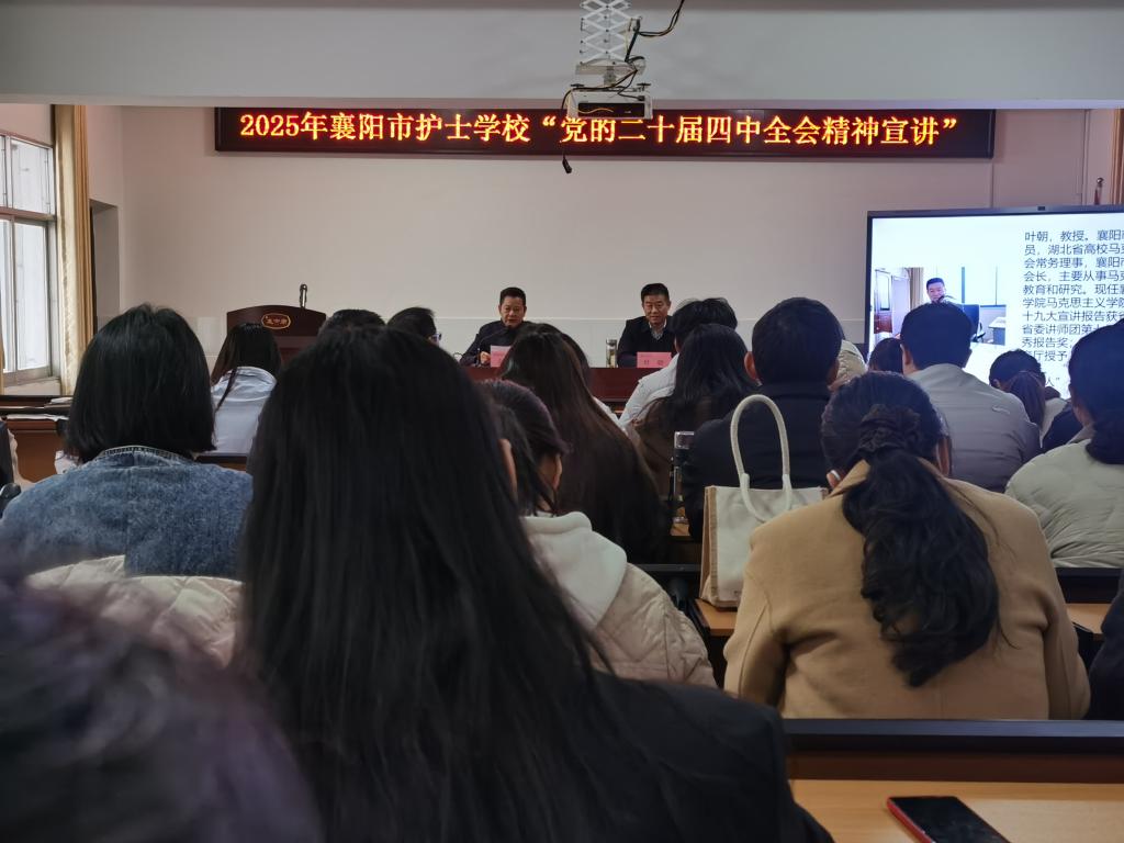 12月2日,襄阳市护士学校组织开展党的二十届四中全会精神宣讲专题学习活动,邀请襄阳职业技术学院叶朝教授以“在接续奋斗中推进中国式现代化”为题作报告。在家领导班子成员与学校全体教职工参加学习。