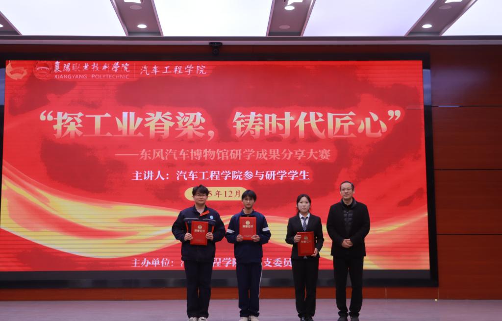 12月3日晚,汽车工程学院成功举办“探工业脊梁,铸时代匠心”——东风汽车博物馆研学成果分享大赛。学院党总支书记程洪涛、副书记龚文华、学工副院长韩向东及学工科辅导员等参加活动。