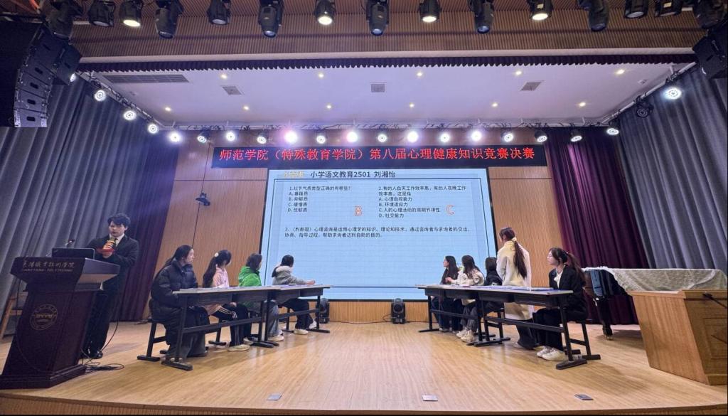 为深入贯彻“立德树人”根本任务,扎实推动心理育人工作,提升师范生心理素养与未来从教能力,师范学院第八届心理健康知识竞赛决赛于12月5日下午在博学楼报告厅圆满落幕。