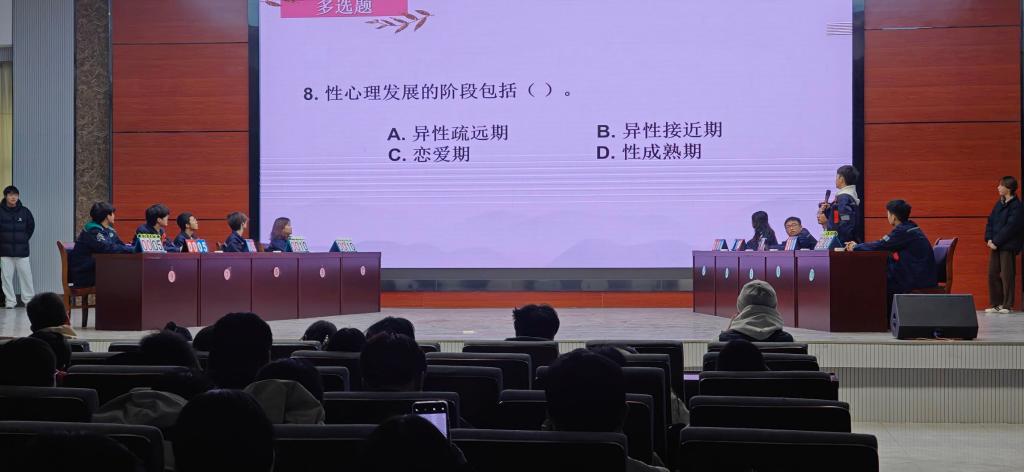 12月4日,汽车工程学院第八届心理健康知识竞赛决赛在智能制造大楼A栋四楼报告厅顺利举办。本次活动由学院二级心理工作站组织,以“知心践行・启智明心”为主题,通过以赛促学的方式普及心理健康知识,增强学生心理调适能力,培育理性平和的心态。经过11月26日初赛的纸质试卷考核,10位优秀选手晋级决赛。
