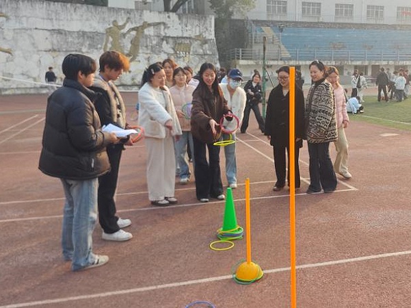 本次竞赛设置了套圈、丢沙包、击鼓颠球三项富有趣味性和技巧性的团体项目。赛场上,同学们团结协作、奋力拼搏,尽情挥洒汗水与热情;赛场边,加油声、欢呼声此起彼伏,展现了旅艺学子昂扬向上的精神风貌和强烈的集体荣誉感。