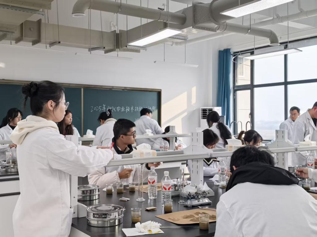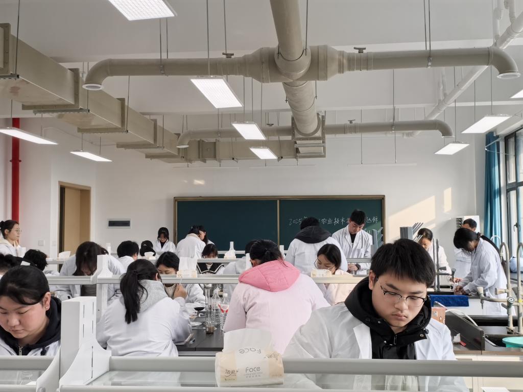 考核现场,学生们身着实验服,在实验台前有条不紊地操作各类仪器设备,从样品处理、试剂配制到数据检测分析,每一个步骤都严谨细致。黑板上的“2025年农业技术技能达标”字样醒目清晰,映衬着学生们专注的神情。本次考核围绕现代农业技术核心技能展开,涵盖农产品检测、土壤分析、作物栽培实操等多个考核模块,全面考查学生的实操能力、问题解决能力和规范操作意识。