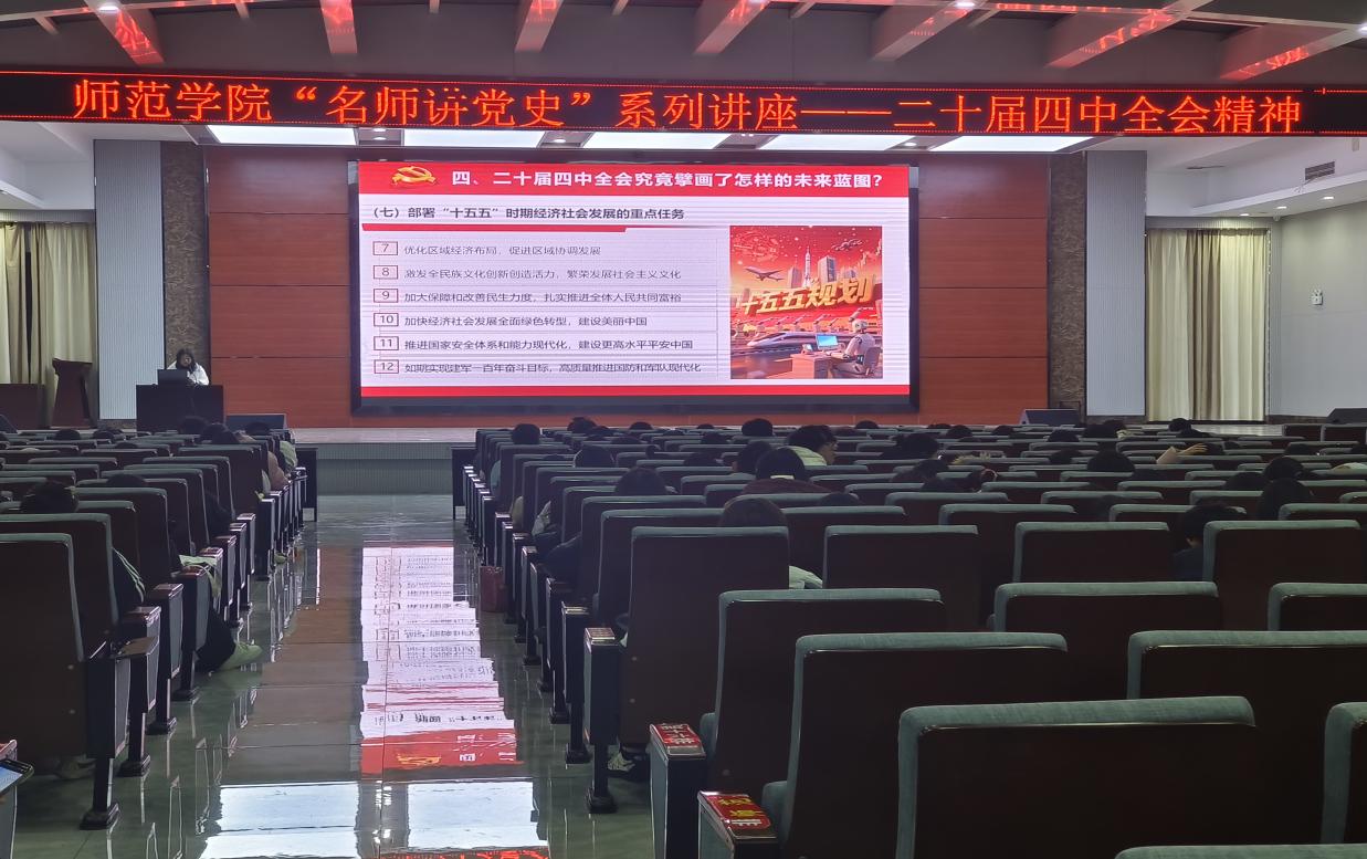 12月9日晚,师范学院在智能制造大楼成功举办“名师讲党史”主题讲座。该院共计500名学生参加活动。