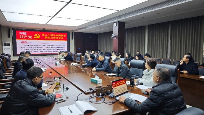 12月12日下午,后勤产业服务总公司在厚德楼五楼会议室开展学习贯彻党的二十届四中全会精神专题宣讲活动。马克思主义学院王金峰教授以《深悟党的二十届四中全会精神,扛起‘十五五’奋进新使命》为题系统讲授。后勤产业服务总公司全体党员、副科级及以上干部参加学习。