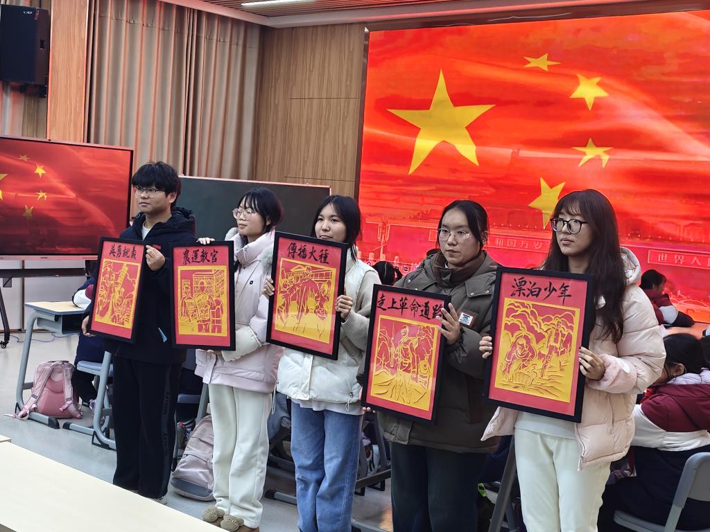 实践展示环节亮点纷呈。千山·雨地文学社学生为实验小学师生带来《闪闪的红星》整本书阅读展演,通过情景朗诵、红色故事讲述、阅读心得分享、剪纸故事展示等多元形式,生动呈现红色经典的当代魅力,展现在党建引领下立德树人的育人实效。活动现场气氛热烈,掌声不断。
