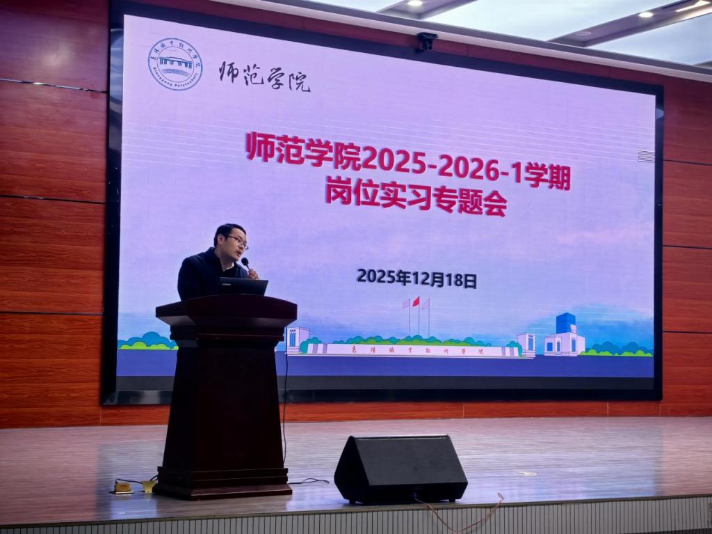 为扎实推进师范学院2026届毕业生岗位实习工作,强化实践教学环节,提升学生专业素养与职业能力,12月18日,师范学院在智能制造四楼报告厅召开2026届小学教育、小学英语教育、小学语文教育、学前教育、特殊教育等专业毕业生岗位实习动员大会。师范学院全体行政人员,各专业研究室主任、毕业班班主任、实习指导老师参会。
