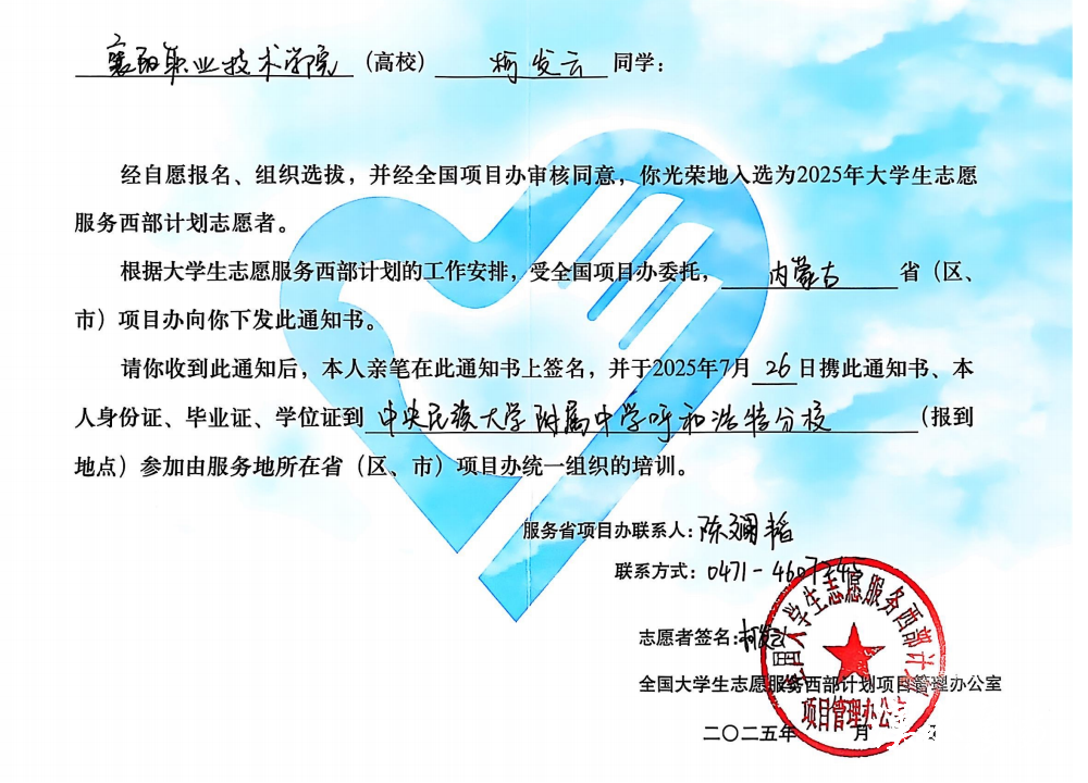 作为凝聚青年力量的重要平台,我校师范学院始终积极鼓励学生参与西部计划。学子们的新加入与期满续签,既展现了西部计划的强大吸引力和志愿精神的传承延续,也充分彰显了学校的育人成效。