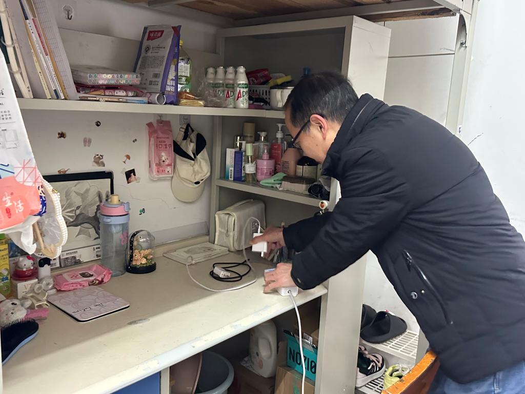 本次排查重点围绕宿舍用电安全与大功率电器使用情况展开。检查人员深入各楼层宿舍,对用电线路、插排使用、电器设备等进行细致检查,并对存在的安全隐患开展督导整改。