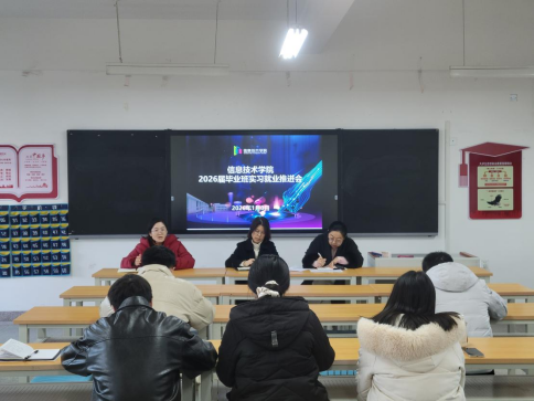1月8日,为系统谋划和提前布局2026届学生实习与就业工作,信息技术学院召开专题推进会,副院长高延伟、周秀丽,就业办主任张小琼及全体2026届毕业班班主任出席会议。
