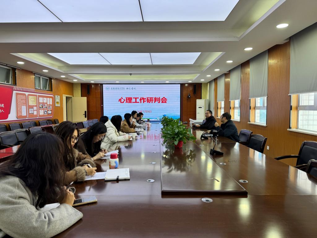 1月9日上午,师范学院在博爱楼会议室组织召开心理工作专题研判会。学院副院长彭建设、学工科科长何林杰及全体辅导员参加会议。