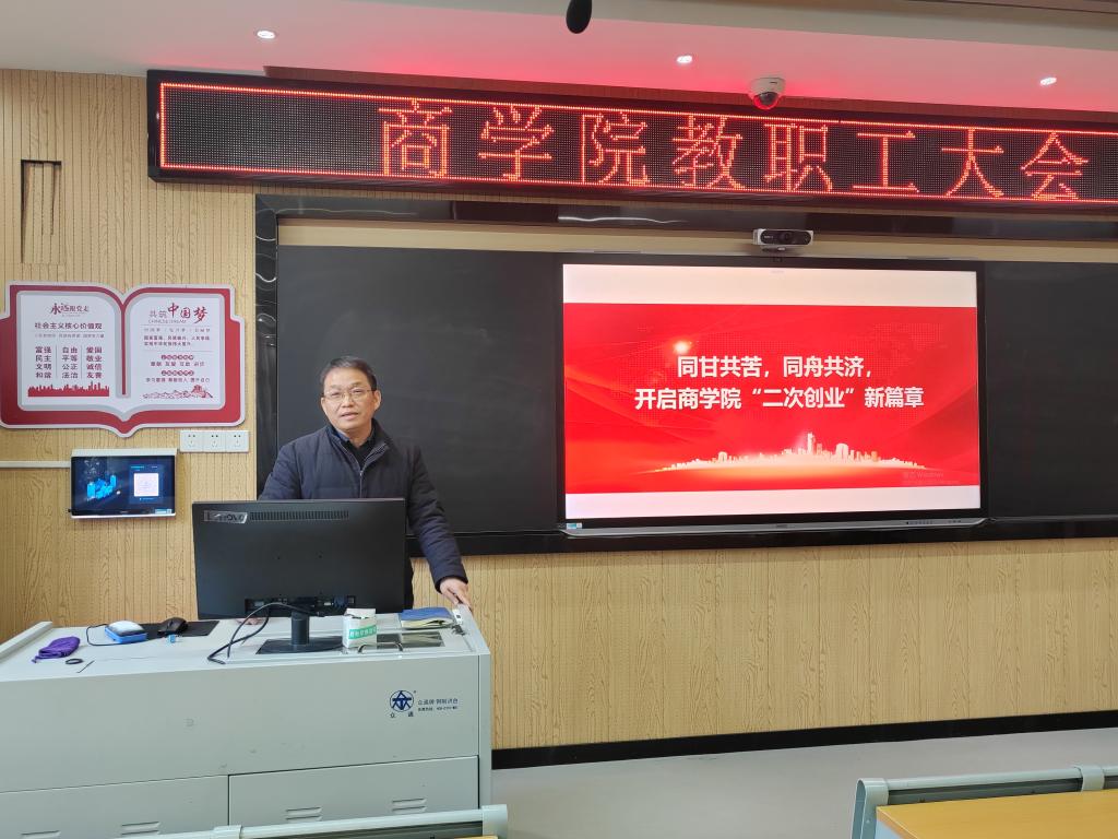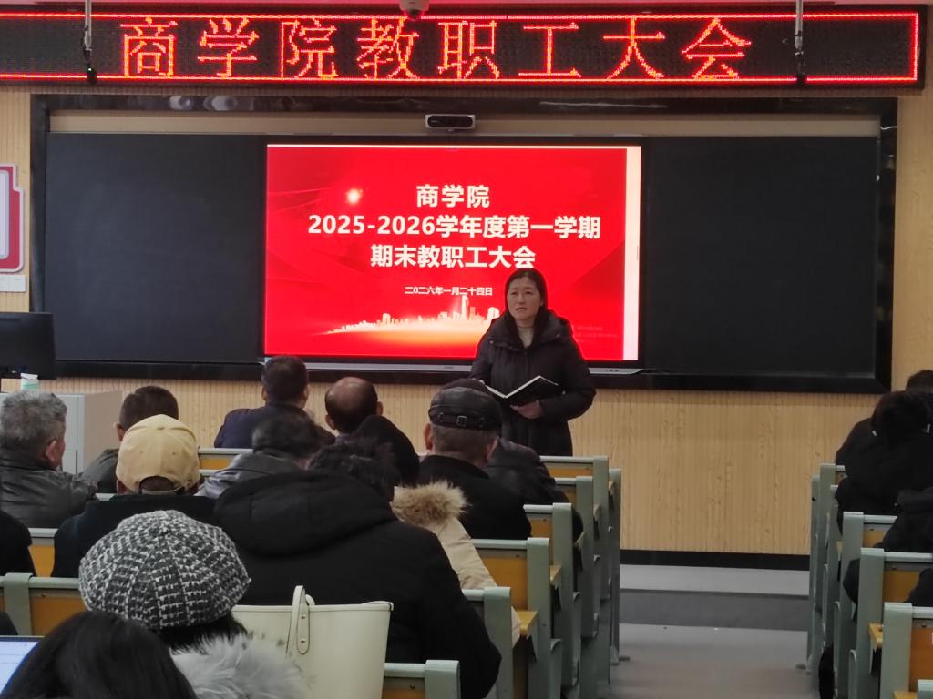 1月24日下午,商学院在笃学楼N101教室召开期末全体教职工大会。会议由院长汪博兴主持。