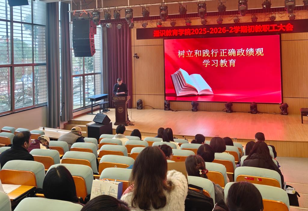3月4日下午,通识教育学院党总支在博学楼报告厅召开全体党员大会,专题开展树立和践行正确政绩观学习教育。会议由学院党总支书记王建宏主持并领学。