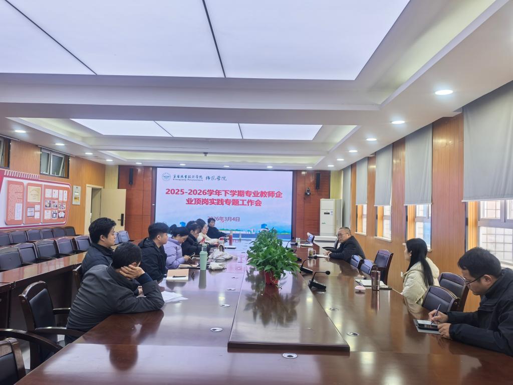 为进一步深化产教融合,全面提升教师实践能力,增强学校服务地方经济建设与社会发展能力,助力学校“二次创业”和职教本科新征程,3月4日下午,师范学院(特殊教育学院)在博学楼召开2026年新学期专业教师企业顶岗实践专题会议。院长刘红新,副院长吴卫明、杨海曼,各专业研究室主任和12名专业教师参加会议。