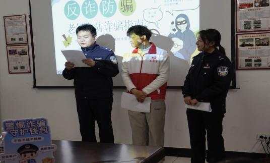 活动紧扣学院学雷锋月主题,发挥师范学子宣讲、演绎等专业优势,打造互动反诈课堂。志愿者制作反诈PPT系统宣讲反诈知识,自编自导情景剧,还原典型诈骗场景,设置知识竞赛问答巩固学习成果;民警与志愿者结合真实案例拆解套路、答疑解惑,指导老人识破诈骗套路,牢记反诈准则,切实提升其防范能力。