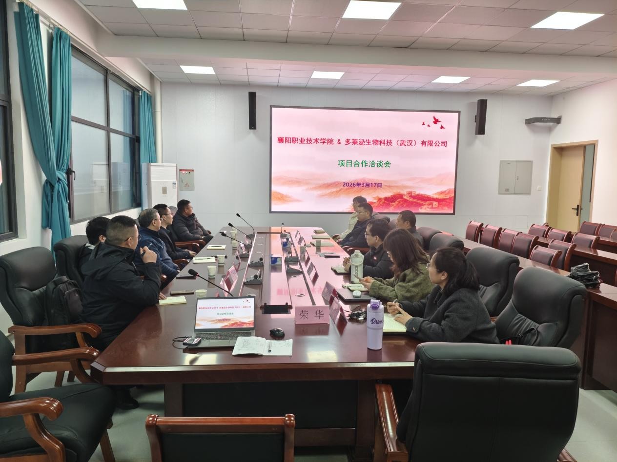 为进一步深化产教融合,助力襄阳国家农高区创建工作,3月17日,襄阳市委外办二级调研员王建军、外联科科长刘青峰,多莱泌生物科技(武汉)有限公司董事长李立来到农学院,洽谈合作事宜。农学院党总支书记金顺敬及骨干教师参与交流活动。