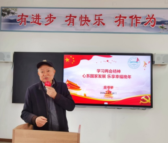 3月18日,学校老年大学“学习两会精神,心系国家发展,乐享幸福晚年”专题讲座顺利开讲。校长皮书举为离退休老同志深度解读2026年全国两会精神及涉老民生新政,把国家利好政策送到银发群体身边。