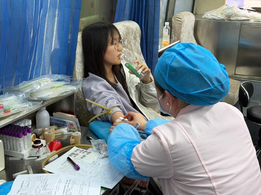 活动现场,吴世清老师率先挽起衣袖,带头参与献血,为同学们树立了榜样。在老师的带领下,学生们有序完成信息登记、健康体检、血液检测、采血等各项流程。殷红的热血缓缓流入采血袋,传递着生命的希望,也彰显了医学院学子心系社会、无私奉献的精神风貌。