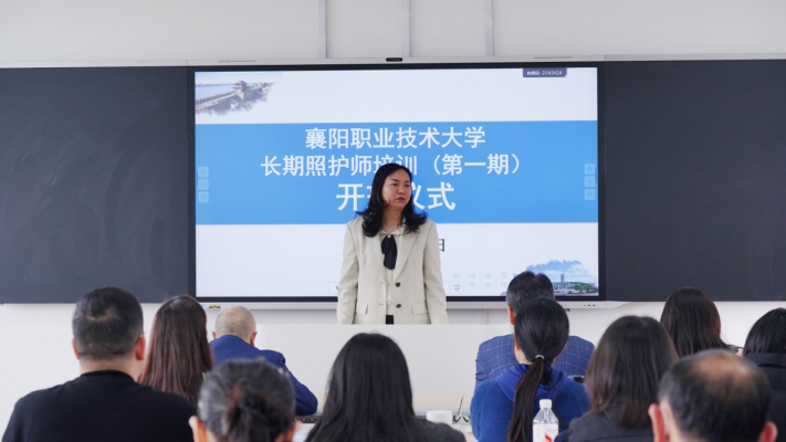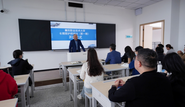 为响应国家长期照护人才培养号召,助力康养事业高质量发展,4月7日上午,襄阳职业技术大学第一期长期照护师培训开班仪式,在高铁南路校区广济楼508教室举行。作为襄阳市医保局和襄阳市人社局指定职业技能培训机构,此次培训开班,标志着长期照护师专业化培训工作正式落地。医学院党总支书记何娟、院长张家忠、副院长李琦,继续教育学院副院长蔡保、护理专业主任王秋月及培训师资团队出席仪式。