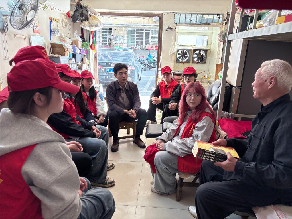 启动仪式结束后,实践团成员前往社区内89岁高龄困难老人庞文德家中开展首次服务。志愿者们耐心聆听老人讲述成长故事与人生经历,在交流中感悟家国变迁与人生智慧。结合自身专业所长,志愿者们还为老人进行了居家适老化设计,提升其生活的便利性与安全性,真正将“青助老”与“老带青”的双向服务理念落到实处。