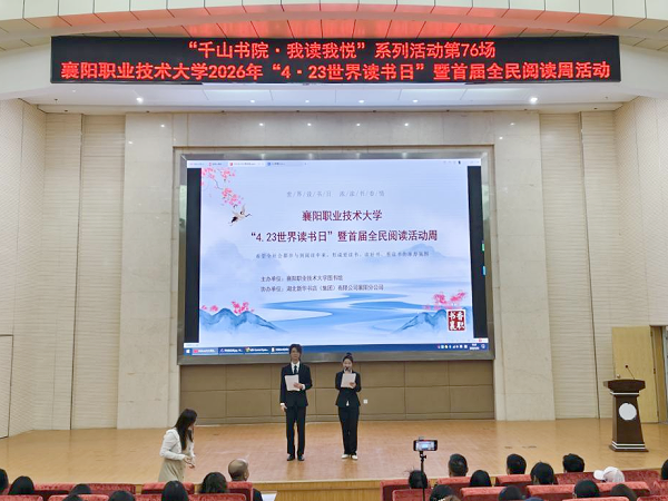 4月23日下午,2026年“4・23 世界读书日”暨首届全民阅读周活动在图书馆二号学术报告厅成功举办。本次活动由校图书馆主办、湖北新华书店襄阳分公司协办,旨在深入学习贯彻习近平总书记关于全民阅读的重要论述,营造爱读书、读好书、善读书的校园风尚。